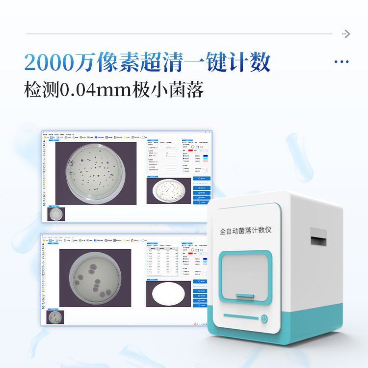 本产品是一款集图像采集、数据处理与统计于一体的自动菌落计数,广泛应用于食品、药品、化妆品、环境监测、医疗卫生、科研院校等领域的菌落计数。该仪器采用先进的数字图像处理技术,具备荧光菌识别和杀菌功能,可实现对培养皿中菌落的快速、准确、全自动计数,显著提升实验效率,降低人工误差。